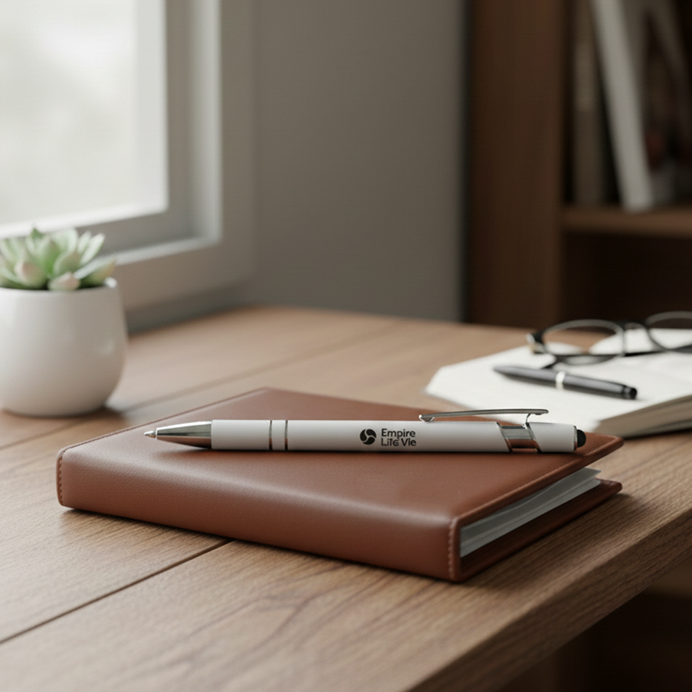 Dual-function pen with a stylus tip for seamless writing and touchscreen use. Ideal for modern workspaces and on-the-go productivity.